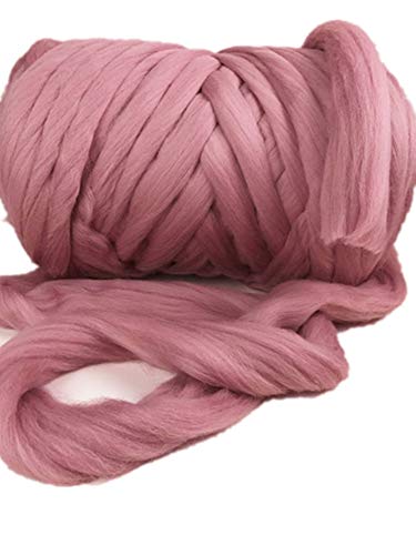 • HomeModa Studio Non-Mulesed Chunky Wool Yarn Big Chunky Yarn Massive Yarn Extreme Arm Knitting Giant Chunky Knit Blankets Throws Grey White (2kg/100M/4.4 lb, Hot Pink)