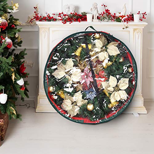 • Primode Christmas Wreath Storage Bag 24" | Garland Wreaths Container with Clear Window for Easy Holiday Storage | Durable 600D Oxford Material (Red)