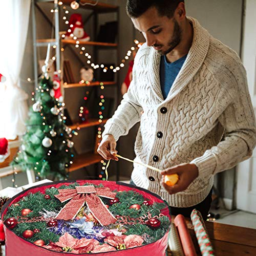• Propik Christmas Wreath Storage Bag 24" - Garland Holiday Container with Clear Window - Tear Resistant Fabric - 24" X 24" X 8" (Red)