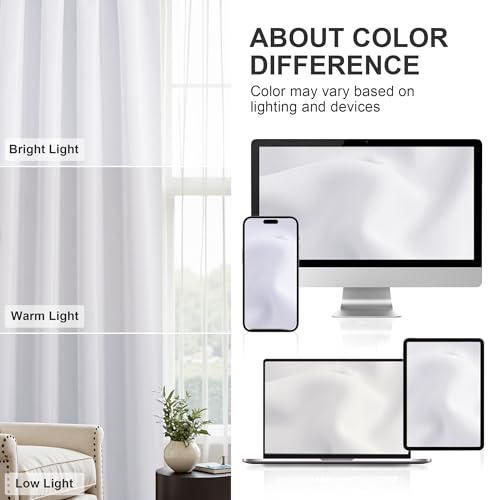 • PONY DANCE White Curtains Decoration - Bedroom White Rod Pocket Top Drapes Solid Soft Window Treatments Panels Half-Light Block for Living Room, 52 in Wide by 72 in Long Drop, 2 Panels