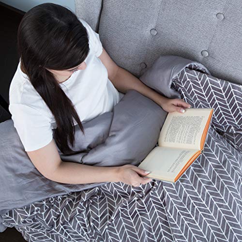 Florensi Weighted Blanket with Removable Bamboo Duvet Cover (15 Lbs & 60" x 80"), 15 Pounds Weighted Comforter, Cooling Blanket for Adults, Machine Washable Cover, Grey Chevron