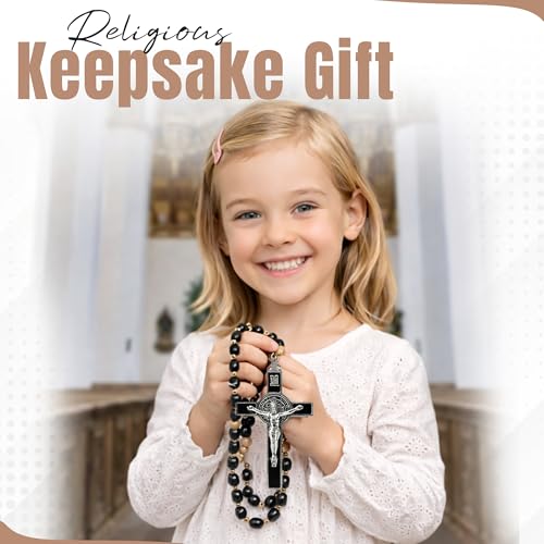 SANCTUM VERITAS Catholic Rosary Necklace | Large Bead Italian Rosary, Christian Prayer Beads for Car Mirror Decor, First Communion Religious Gift for Men and Women, Catholic Keepsake (Black Wood), 8.8 cm