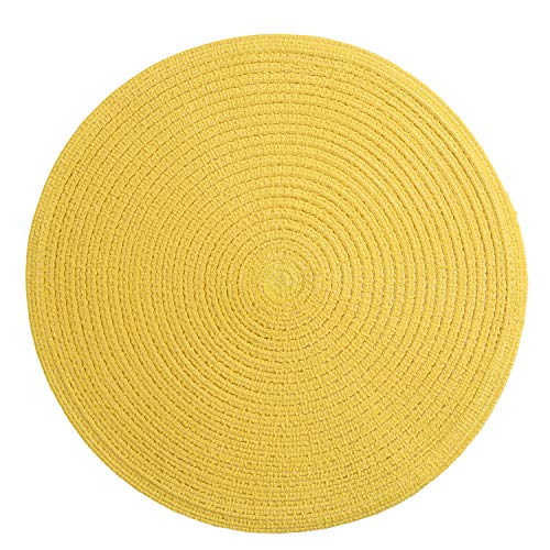 • SHACOS Round Braided Placemats Set of 4 Washable Kitchen Table Place Mats Doilies Table Mats for Home Wedding Party Dining Table Decor (Yellow, 4)