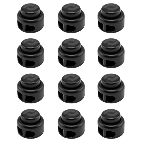 RJ-Sport Heavy Duty Cord Locks - Double Hole Drawstring Stopper Fastener for No Tie Shoelaces and More, 01 Black, One Size