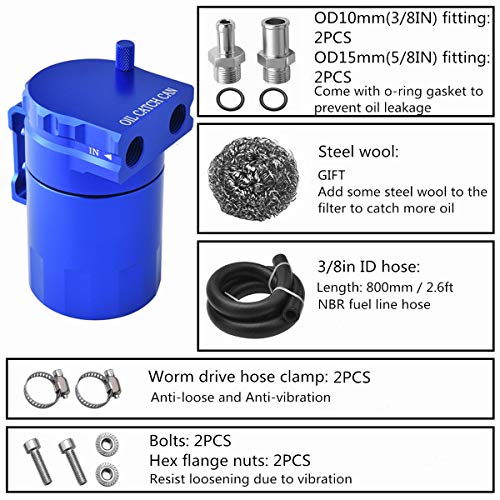 • EVIL ENERGY Oil Catch Can, Universal Baffled Catch Can Kit with NBR Fuel Hose, 300ml Aluminum Air Oil Separator Tank for PCV System Blue