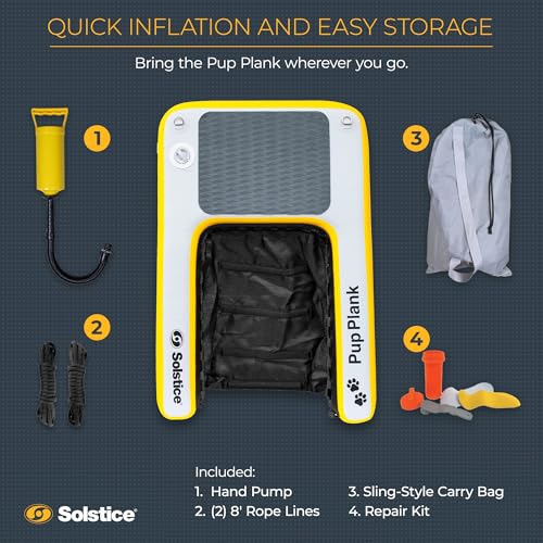 • SOLSTICE Original Inflatable Pup Plank Dog Float Floating Ramp Ladder for Pools Boats Docks, Dog On Water Ladder Steps for Swimming Pets Up to 200 Pounds