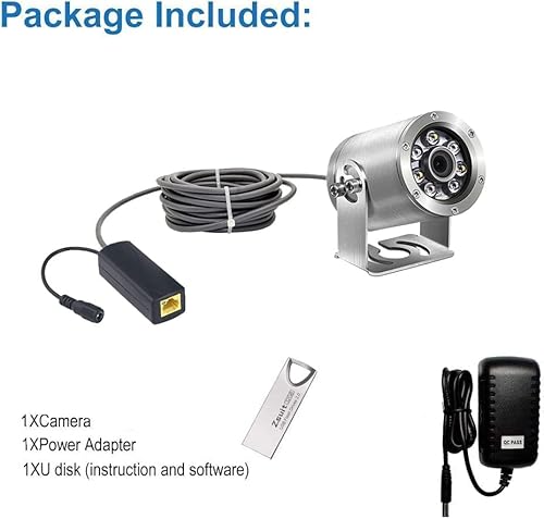 Barlus Underwater Camera POE 5MP CMOS Lens 100° Wide-Angle Sea Stainless Steel with Fill Light IP68 Waterproof Camera for 24/7 koi Pond with 32ft Cable, silver, 1 Count (Pack of 1)