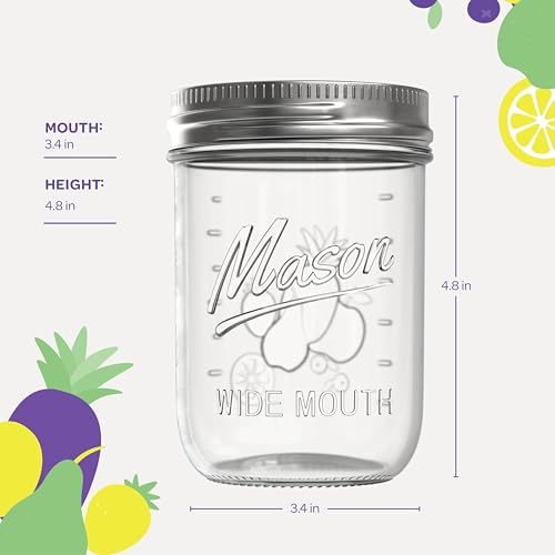 • SEWANTA Wide Mouth Mason Jars 16 oz [5 Pack] With Mason Jar Lids and Bands, Mason Jars 16 oz - For Canning, Fermenting, Pickling - Jar Décor - Microwave/Freeze/Dishwasher Safe.