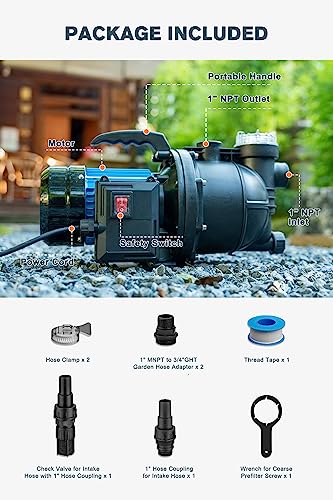 • FLUENTPOWER 1.5HP Portable Garden Booster Pump with Prefilter, 1200GPH, Lift 151FT, Shallow Well Jet Pump, Water Transfer Draining Pump for Home Garden Lawn Sprinkler Irrigation