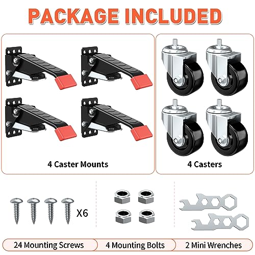 • SPACEKEEPER Workbench Casters kit 920 Lbs Retractable Casters Heavy Duty Bench Caster Wheels Side Mounted Retractable Workbench Wheels Designed for Workbenches Machinery & Tables, 4 Pack