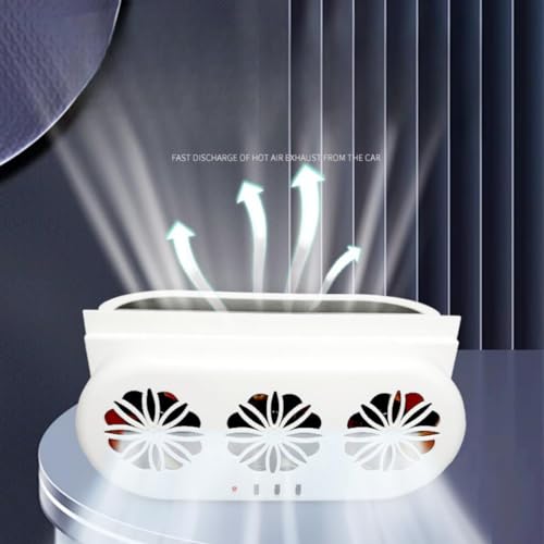 • MYUOOT Solar Car Window Fans with Exhaust and Intake - Vehicle Exhaust Fan with 3 Air Outlet, Window Fan Vehicle Radiator Vent with USB for All Cars, White