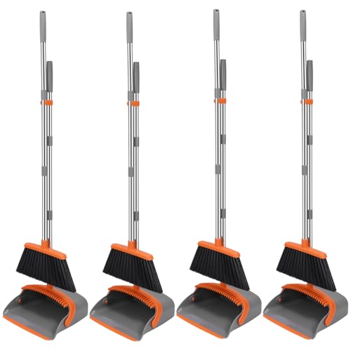 • NACENA Broom and Dustpan Set, 52-in Long Adjustable Handle Broom Dustpan Combo with Dustpan Teeth to Automatically Clean Hair Suitable for Home Kitchen Office Hall Floor (Grey&Orange), 4 Pack