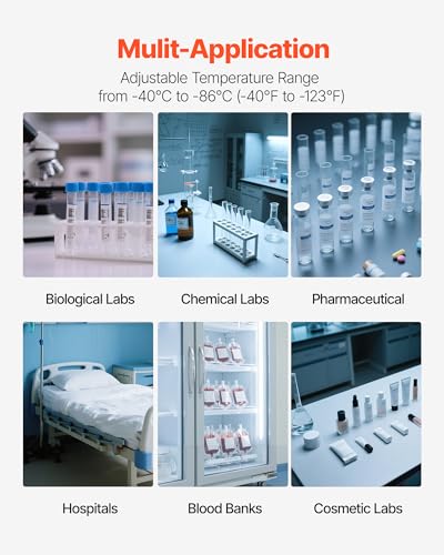 • VEVOR Ultra Low Temperature Freezer, 25 L, −40 ℉ to −123 ℉ Adjustable Temp Range, with Digital Display, 304 Stainless Steel Liner, Portable Low Temperature Lab Freezer for Laboratory Samples Storage