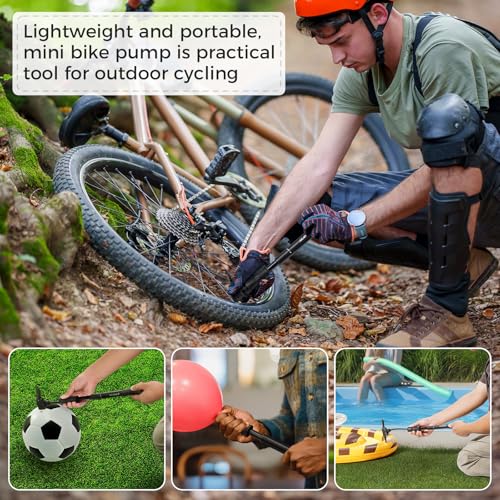 • NUWAB Mini Bike Pump with Gauge, 10 Inch Portable Hand Bicycle Pump, 100PSI, Support Shrader and Presta, Fast Air Out Ball Pump, Work with All Bikes and Balls, Swimming Ring