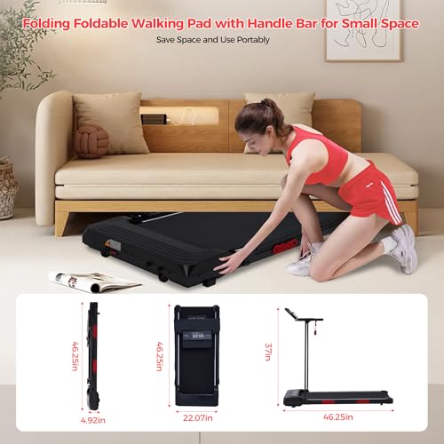 • Electric Walking Pad with Handle Bar, 0.6-10MPH Portable Walkingp Pads Treadmills with Handles for Home Apartment Small, 3.5HP Foldable Folding Compact Treadmill for Small Spaces, LED Display, 400LBS