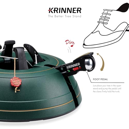 • Krinner Christmas Tree Genie Medium - Green Tree Stand - Original Single Cable Operation, Holds up to 7 ft Live Trees - Foot Pedal Setup & Water Reservoir with Level Indicator - German Made