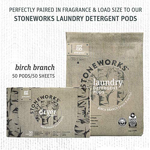• Grab Green Stoneworks Dryer Sheets, Naturally-Derived & Compostable, Free of Wax & Animal-Derived Ingredients, Birch Branch, 50 Sheets, 3-Pack