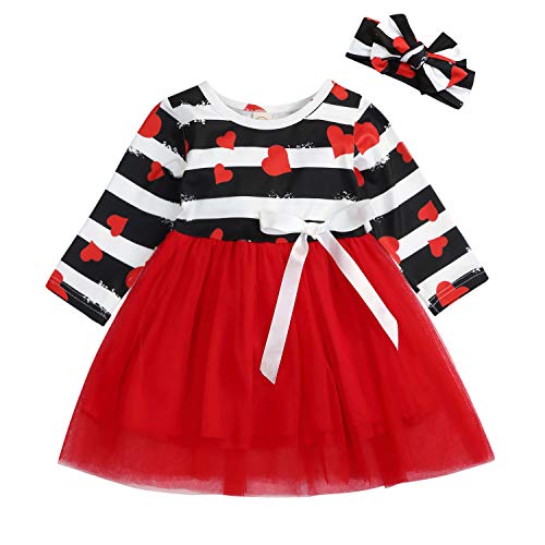 • Valentine's Day Toddler Baby Girls Dress Outfits Heart Print Princess Party Tutu Skirt Ruffle Dresses Clothes (Red, 12-18 Months)