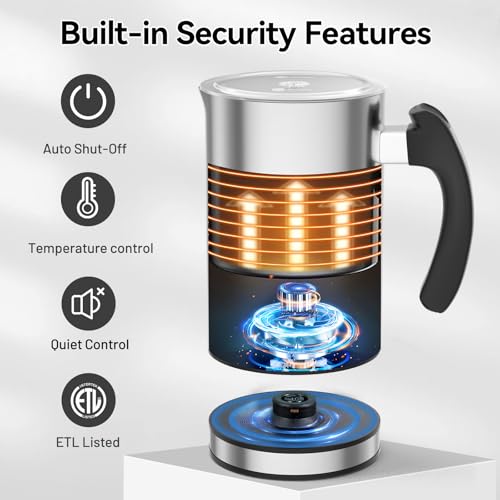 • Secura Electric Milk Frother, Automatic Milk Steamer Warm or Cold Foam Maker for Coffee, Cappuccino, Latte, Stainless Steel Milk Warmer with Strix Temperature Controls