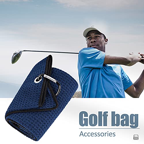 Mile High Life Tri-fold Golf Towel | Premium Microfiber Fabric | Waffle Pattern | with Heavy Duty Carabiner Clip | Golf Towel for Men and Women (NavyGolf Towel), 16"x21"