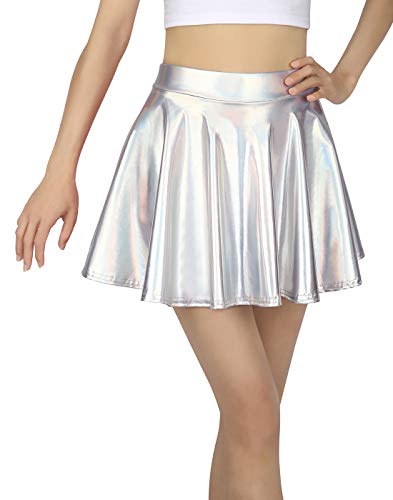 HDE Girl's Metallic Skater Skort Dance Athletic Shiny Holographic Scooter Skirt Holographic - 6-7, Silver