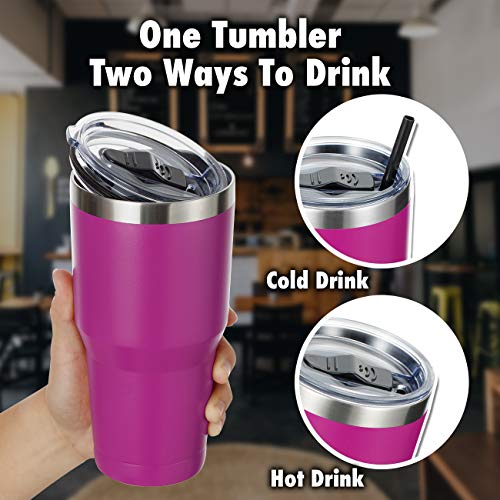• ALOUFEA 30oz Stainless Steel Tumbler, Insulated Coffee Tumbler Cup with Lid and Straw, Double Walled Travel Coffee Mug for Hot & Cold Drinks (Fuschia, 1 Pack)