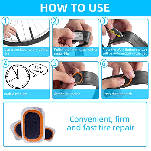• Maifede Bike Inner Tire Patch Repair Kit - with 11 PCS Vulcanizing Patches, 6 PCS Pre Glued Patchs, Portable Storage Box, Metal Rasp and Lever - Also for Motorcycle, BMX and Inflatable Rubber.