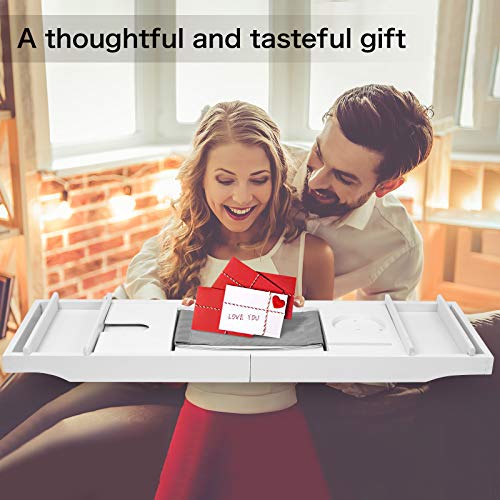 • Artmalle Luxury Bamboo Bathtub Caddy Tray with Book and Wine Holder,Bath Accessories & Bed Tray with Extending Sides,Bathroom Organizer for Men/Women,Free Soap Holder,White
