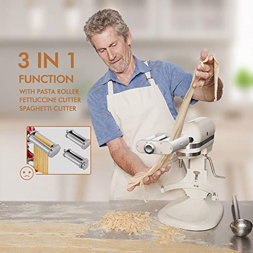 Pasta Maker Attachment for KitchenAid Stand Mixers 3 in 1 Set Includes Pasta Roller Spaghetti Cutter & Fettuccine Cutter, Pasta Attachment for KitchenAid and Cleaning Brush By Jovan Home, 3-in-1, White