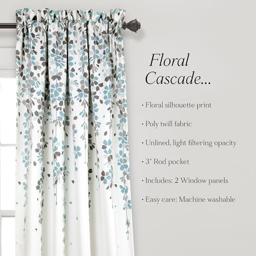 • Lush Decor Weeping Flower Light Filtering Window Curtain Panels, Pair, 52"W x 108"L + 2" Header, Blue & Gray - Charming Modern Floral Curtains for Living Room, Dining Room, & Bedroom