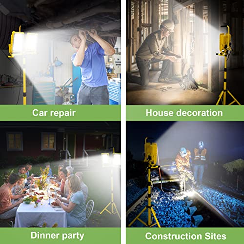 • 25000 Lumen Work Lights with Stand, Dual Head LED Work Light with USB & Socket, Waterproof Portable Lights with Individual Switch, Led Flood Light with 72 Inch Adjustable Metal Telescoping Tripod