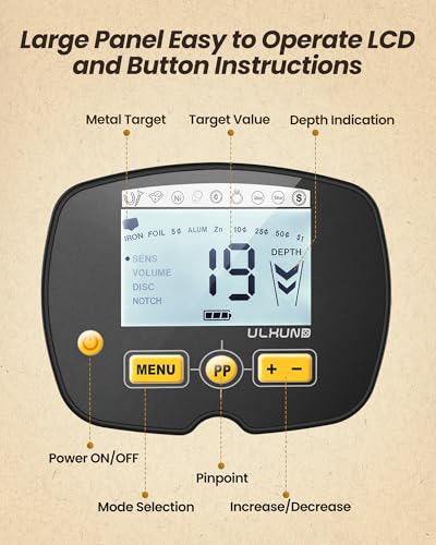 • Upgraded Metal Detector for Adults, Easy to Use Higher Accuracy Metal Detector Advanced DSP Chip with 12'' Detection Depth Lightweight Waterproof for Beach Yard