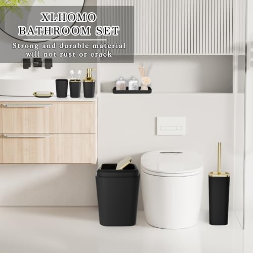 XLHOMO Black Bathroom Accessories Set, Black and Gold Bathroom Accessories with Trash Can, Tray, Soap Dispenser, Soap Dish, Toothbrush Holder, Toothbrush Cup,Toilet Brush and Qtip Holders