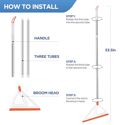 Multifunction Magic Broom, Squeegee Broom for Floor, Rubber Broom, Silicone Broom for Floor Cleaning, Magic Broom Sweeper for Living Room, Kitchen, Bathroom-Easy Dry The Glass (Orange, 54 INCH)