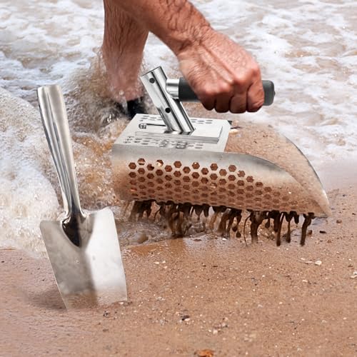 • GADFISH Sand Scoop for Metal Detecting, Metal Detector Scoop, Stainless Steel Sand Sifter Shovel, Fast Sifter Shovel for Underwater Treasure Hunting (Stainless Steel)