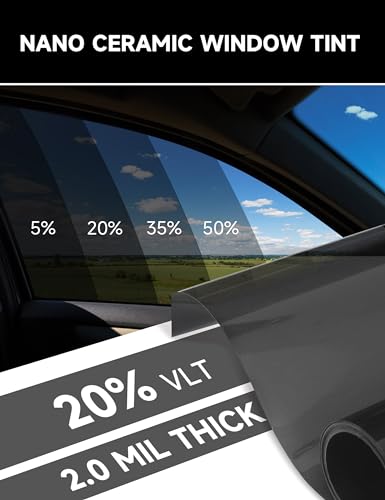 GISSVOGEEK Window Tint Car Automotive, Privacy Protection, Nano Ceramic Car Window Tint, 2Mil Thick, DIY Installation, UVR 99% Heat& UV Block or Professional Application, (20% VLT), 20" x 10FT, 20" x 10FT