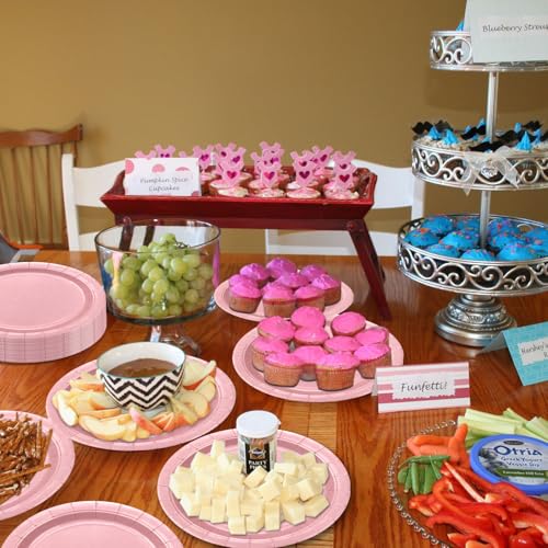 • PTECDROTS 50pc Pink Paper Plates - 9' Pink Birthday Dinner Plates for Girls Baby Shower Gender Reveal Parties