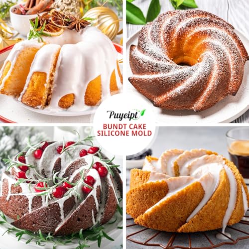 • Puyeipt 9.7 Inch Silicone Spiral Fluted Tube Cake Pan, 2 Pack Non Stick Silicone Baking Molds for Cake, Bread, Brownie, Jello